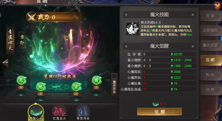 ④.魔火觉醒后获取对应技能效果,每次觉醒提升魔火技能等级和属性。